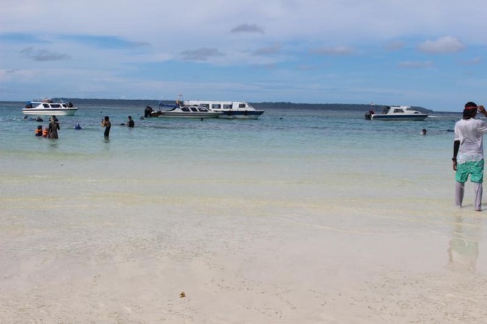 Pantai Pulau Maratua dengan kapal-kapal wisatawan.