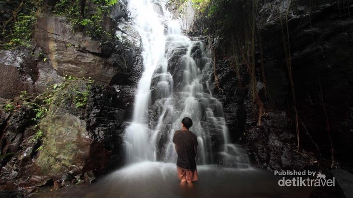 Air Terjun Selo Lapis tampilannya cantik. Traveler bisa berfoto sambil main air di sana, tapi siap-siap saja, airnya dingin banget!
