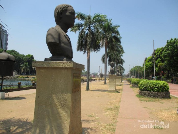 Di sisi kolam tersebut berjejer patung setengah badan yang merupakan patung para pahlawan-pahlawan nasional di Filipina