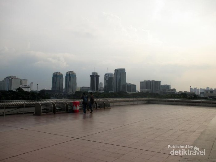Selain pemandangan Kota Jakarta, dari sini juga bisa melihat Masjid Istiqlal, masjid terbesar di Asia tenggara.