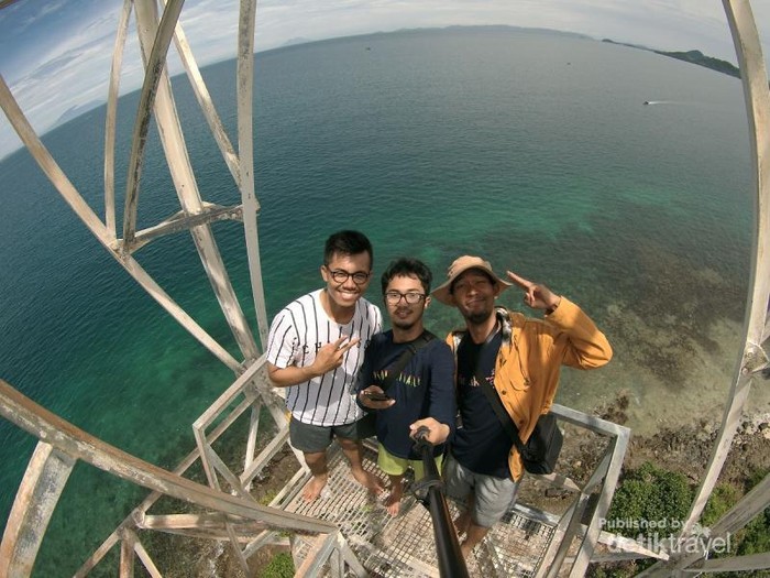 Kita juga dapat menaiki menara pantau di ujung pulau Mahitam, tapi harus tetap hati-hati ya..!