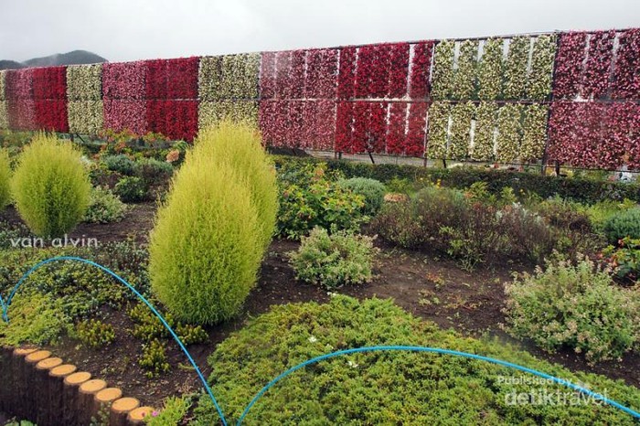 Di sana terdapat papan yang memberikan informasi mengenai jenis-jenis bunga yang ditanam di taman tersebut