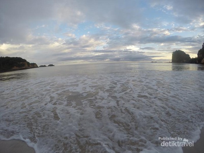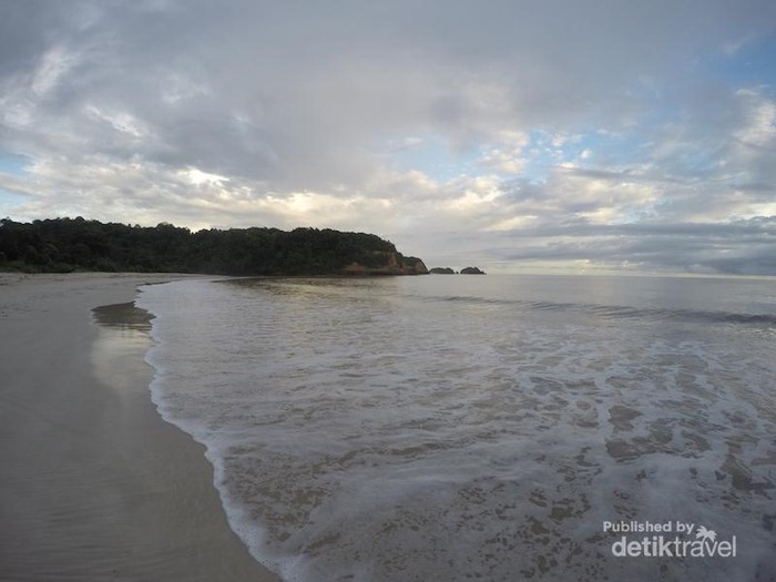 Pasir putih dengan ombak yang tidak terlalu besar sangat cocok untuk bermain main di tepi pantai.