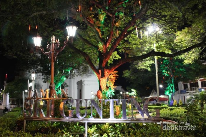 Taman Srigunting yang berada dekat Gereja Blenduk bermandikan cahaya warna warni