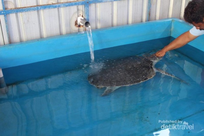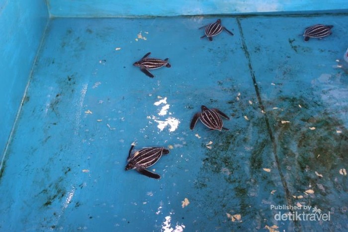 Tukik yang sudah menetas dan belum dilepas ditampung dalam bak-bak besar