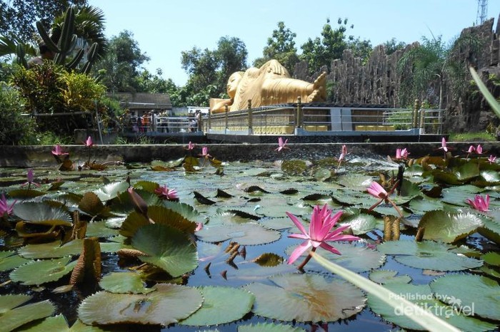 Teratai yang hidup di kolam dekat Patung Budha Tidur