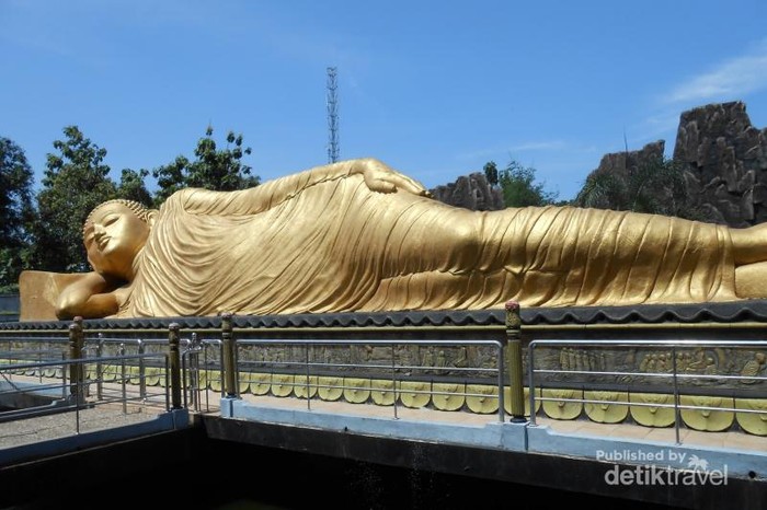 Patung Budha Tidur ini memiliki panjang 22 meter dengan lebar 6 meter dan tinggi 4,5 meter