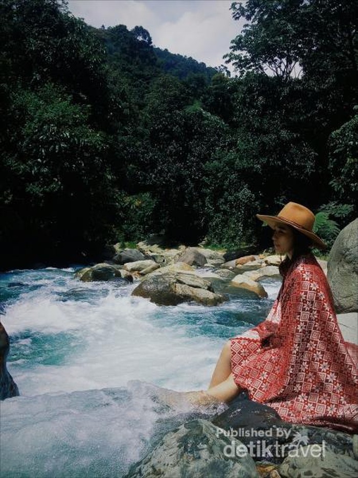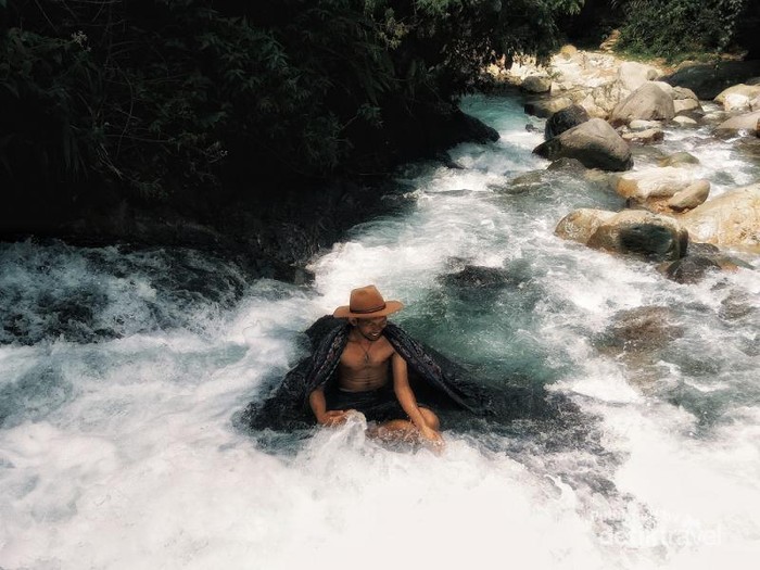 Bergaya ala model bak bidadari yangg sedang mandi sungai (photo: @priliasilvi)
