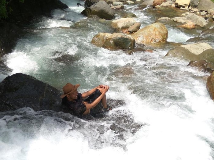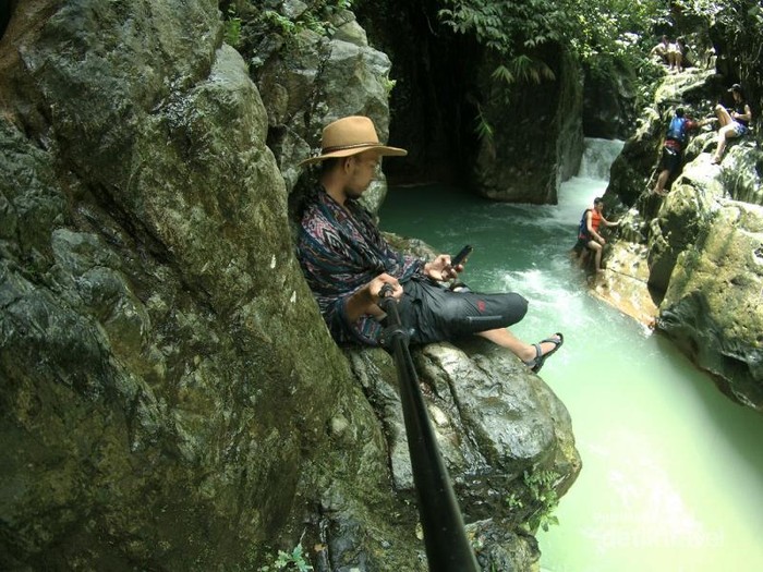 Bersantai menikmati derasnya aliran curug Lewi Lieuk, Bogor