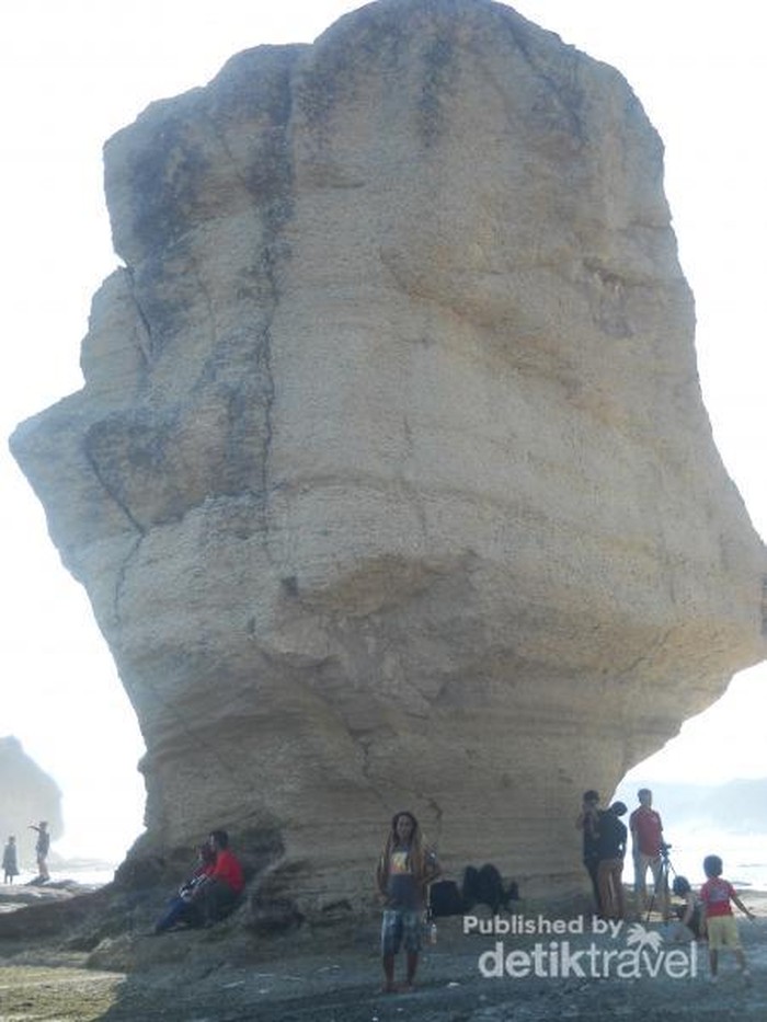 Di tepi pantai di Lombok, berdiri sebuah batu besar yang dijuluki Batu Payung. Batu ini tak jarang jadi spot foto para turis.