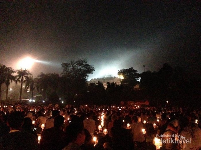 Suasana pelepasan 5000 lampion di pelataran taman Lumbini Candi Borobudur