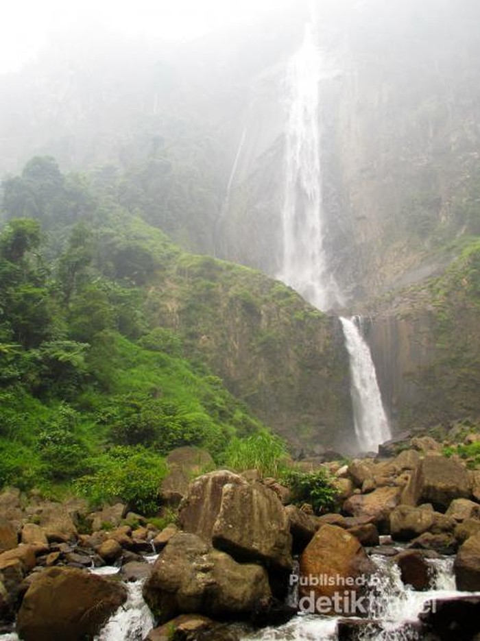 Air terjunnya memiliki ketinggian sekitar 100 meter dengan 3 tingkatan air terjun
