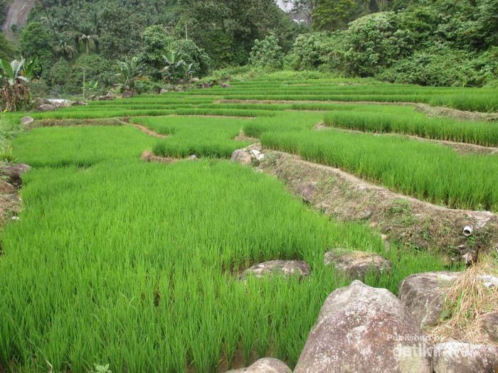 Perpaduan antara hijaunya persawahan yang berundak-undak, segarnya air terjun yang mengalir deras dan kokohnya tebing batu dari Ngarai Sigura-Gura