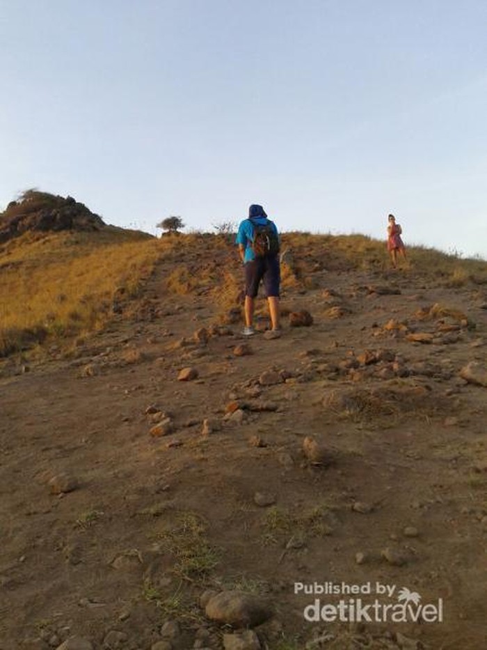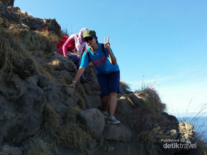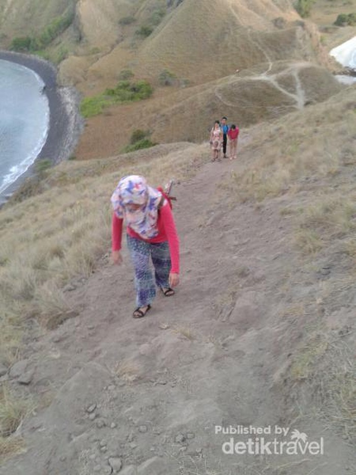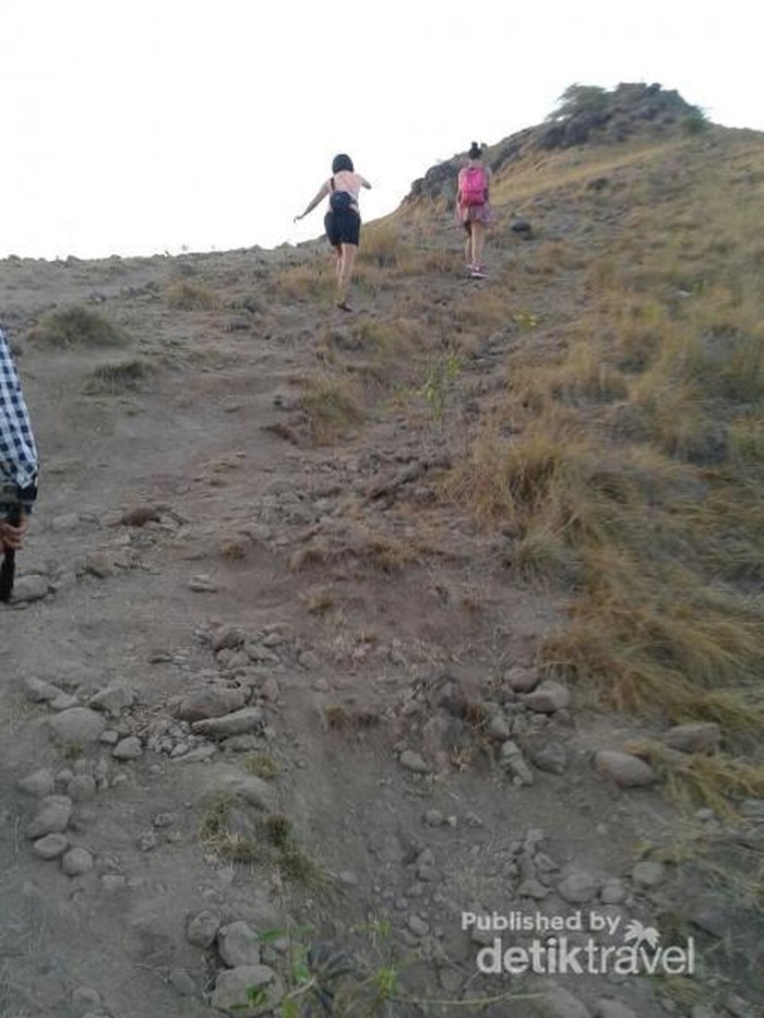 Jalan mendaki dan berpasir, jika tidak melangkah hati hati sangat mudah tergelincir