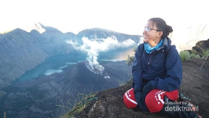 Duduk bersila aja dengan santai saya menikmati indahnya melihat puncak Rinjani di ketinggian sana. Puncak masih jauh guys, tapi harus optimis sampai puncak