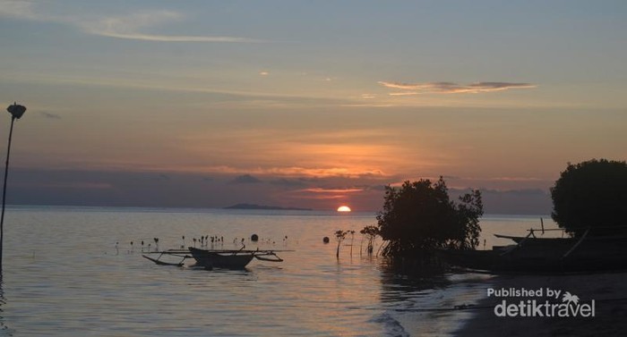 Sunset yang indah di desa wisata Arborek, Raja Ampat