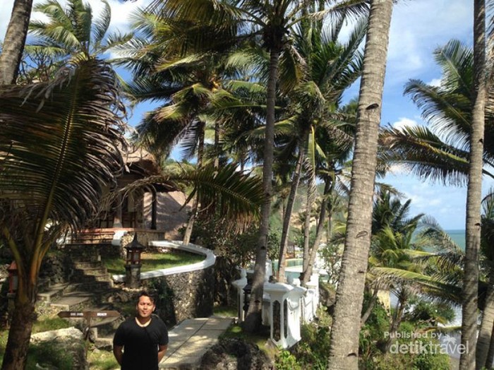 Mengabadikan momen dengan pohon kelapa di sekitar