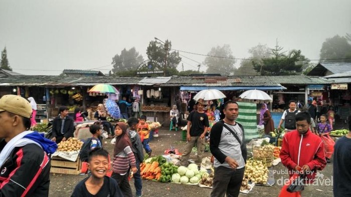 Pasar yang menjajakan kerajinan tangan, hasil bumi, dan oleh-oleh di depan pintu masuk