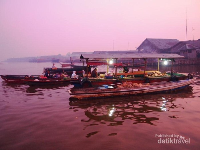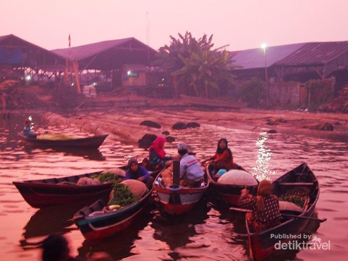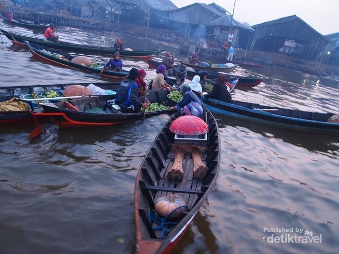 Transaksi Berlangsung Antara Penjual dan Pembeli di Atas Perahu