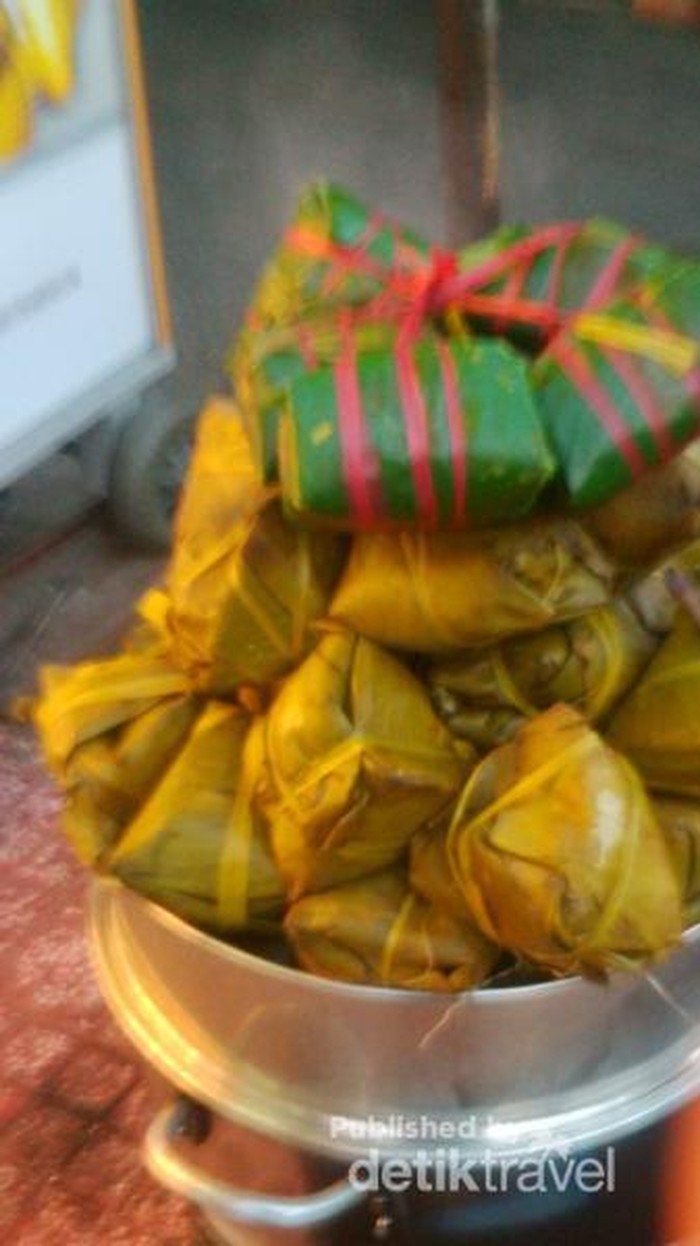 Dibungkus dengan daun pisang. ada kemiripan dengan makanan di Jawaataupun beberapa daerah di Indonesia.