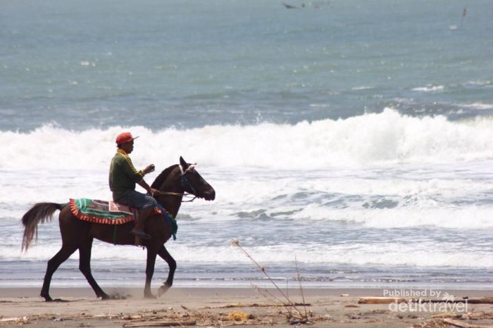 Pantai ini memiliki kesamaan dengan pantai Selatan yang ada di Yogyakarta. Berpasir hitam dan berombak besar