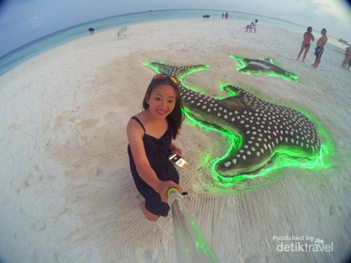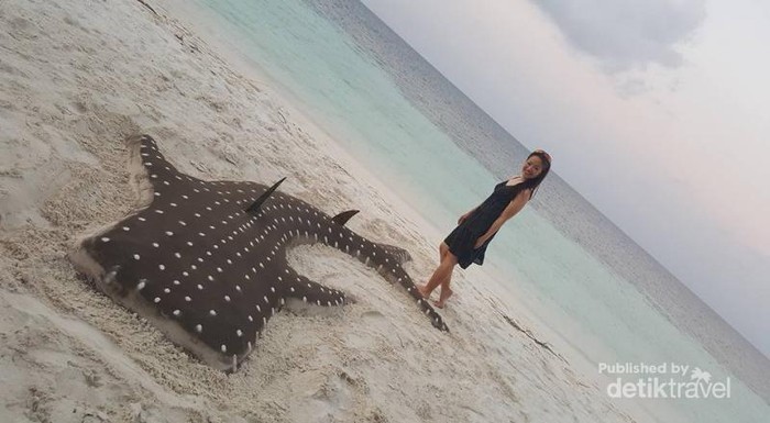 Rah Dhiggaa Beach - tempat unik di mana di buatkan gundukan pasir dengan berbagai bentuk binatang laut yg besar dan indah , dan ini salah satunya whaleshark