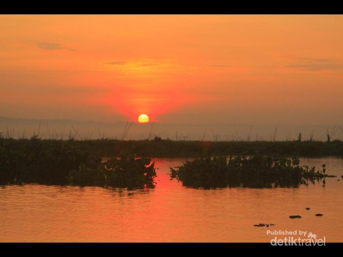 Sunrise dengan latar danau yang ditumbuhi dengan eceng gondok di Ambarawa.