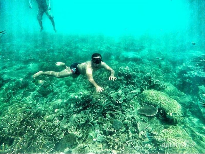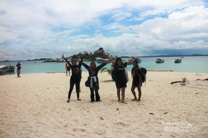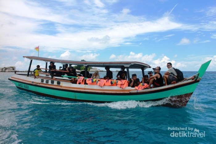 Para Laskar Gerhana Detikcom menuju tempat makan siang di pulau Gede Selayang