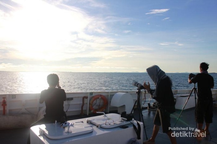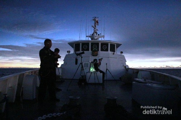 Aksi para fotografer pemburu Gerhana Belitung di atas Kapal BAKAMLA