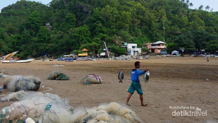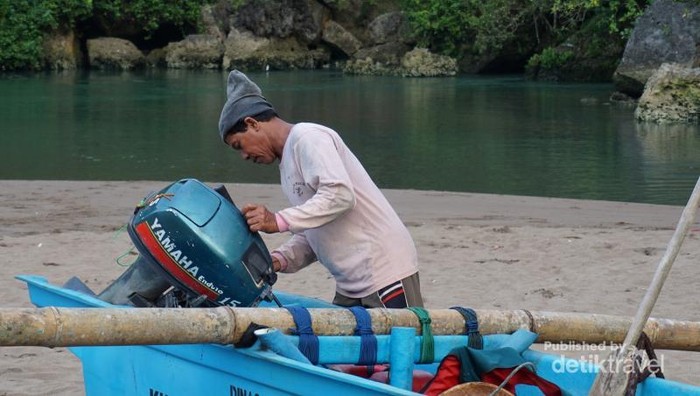 Selain main air dan menikmati birunya air laut di Pantai Baron, turis juga bisa bertemu para nelayan. Misalnya saja saat merek bersiap melaut.