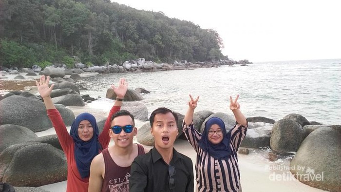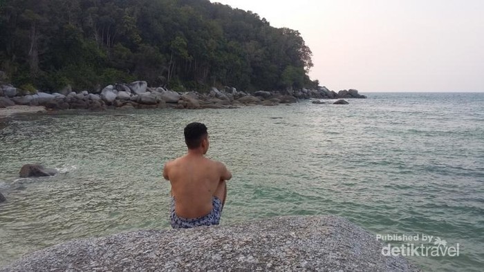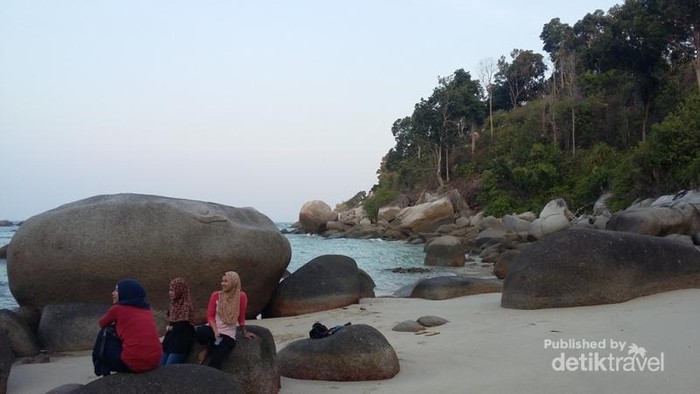 Saat saya, Leo Erika, Renilda dan Fini Anggraini bertandang ke pantai yang terletak di ujung barat Pulau Bangka, pada sebuah sore yang cerah.