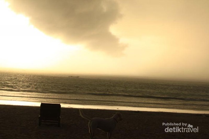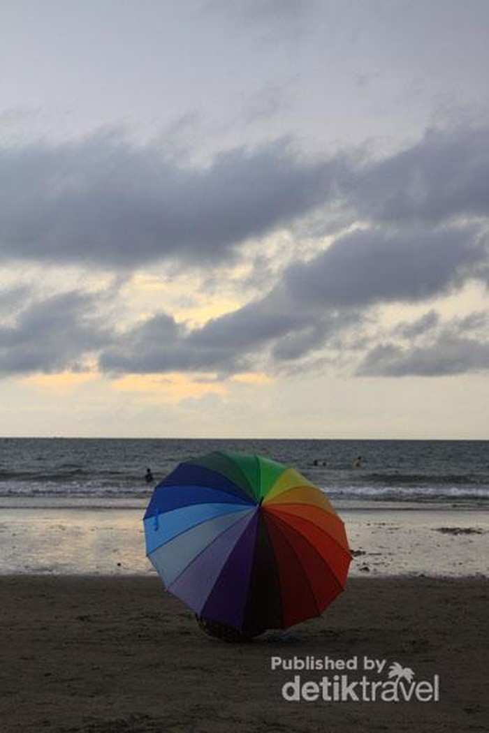 Pantai Kuta di Bali hampir setiap hari dipadati wisatawan yang asyik bermain air. Tapi, suasana sepi pun akan terlihat ketika hujan turun dengan derasnya di sana.