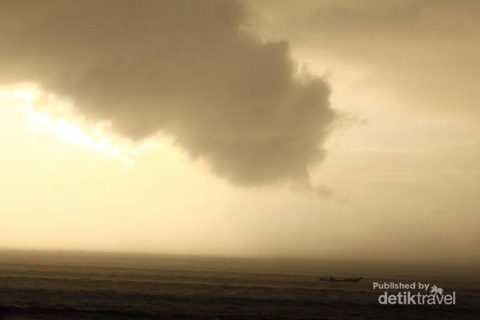 Hujan deras membuat jarak pandang berkurang dan memberi kesan sunyi nan mistis di laut