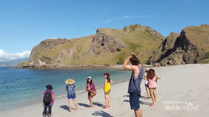 Pantai yang berada di Pulau Padar dengan warna pasir yang sangat putih dan laut berwarna biru muda nan jernih