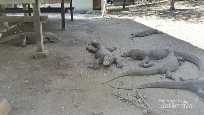 Para Komodo liar yang sedang bersantai siang hari. Komodo merupakan kadal terbesar di dunia yang kini sudah mulai rentan terlihat di Pulau Komodo dan Pulau Rinca