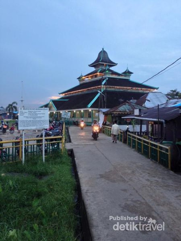 Senja menjelang di Masjid Jamik Pontianak yang terletak di tepian Sungai Kapuas