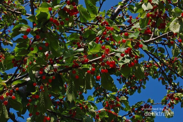 Suguhan dari alam, buah cheery nan ranum dan merah menggoda bisa dinikmati sepuasnya.
