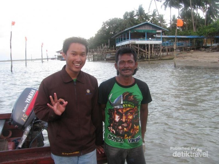 Berfoto bersama seorang pemilik pompong yang mengantarkan kami ke Pulau Putri dari Pantai Nongsa