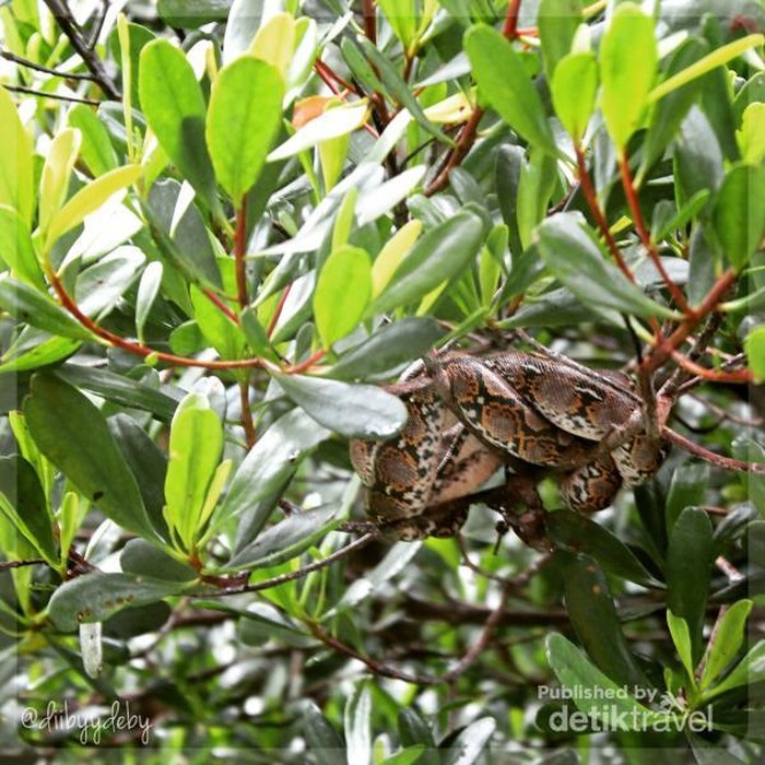 Berkano ria di Sungai Cigenter bonus ketemu ular tidur di dahan pohon