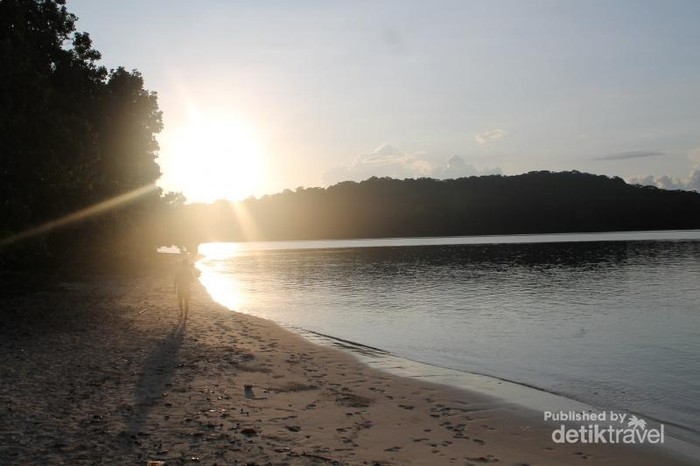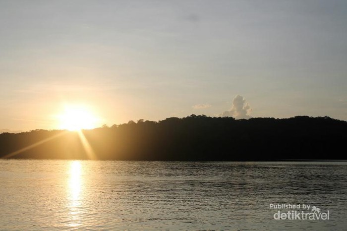 Matahari terbit dari pinggir pantai, Pulau Peucang