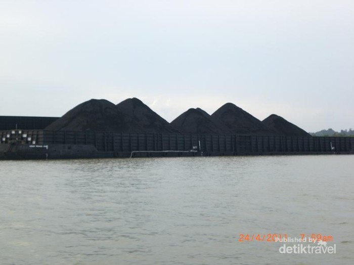 Gundukan batu bara yang menyerupai pegunungan di atas tongkang merupakan pemandangan yang paling sering dijumpai menuju lokasi ini