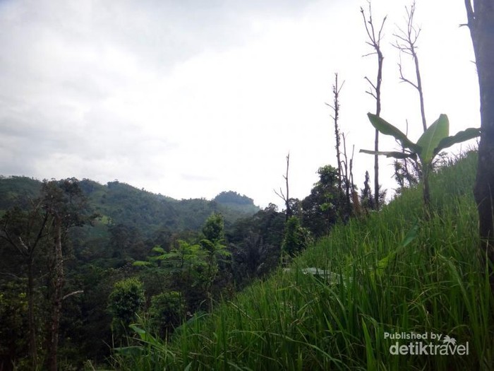 Pemandangan hijau sepanjang jalan. Curah hujan di sini sangat tinggi. Mata pencaharian utama mereka adalah bertani dengan posisi sawah yang miring.
