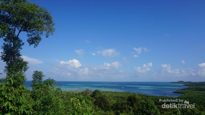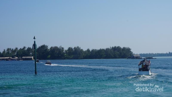 Pemandangan dari dermaga tempat kapal-kapal akan berangkat mengantar tamu untuk pergi snorkling atau keliling pulau