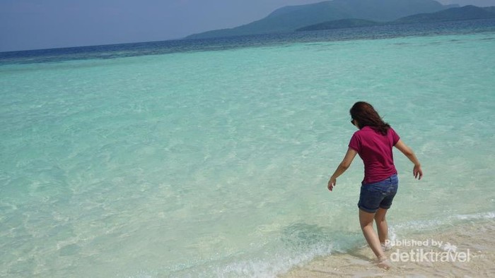 Begini pemandangan di salah satu pulau yang ada di Karimunjawa. Airnya bening, ombak cukup tenang