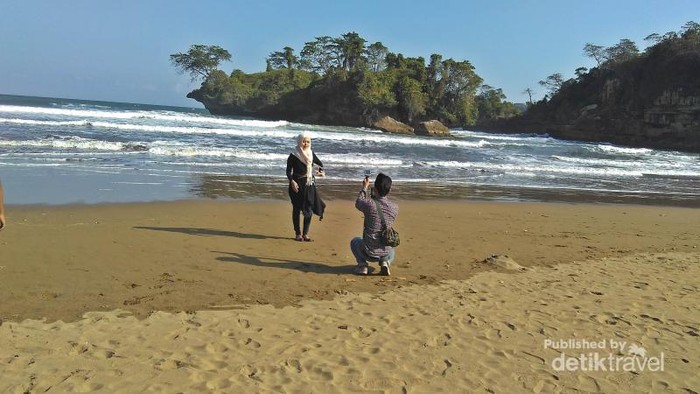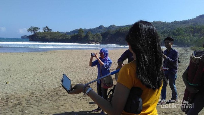Berfoto di Pantai pelang