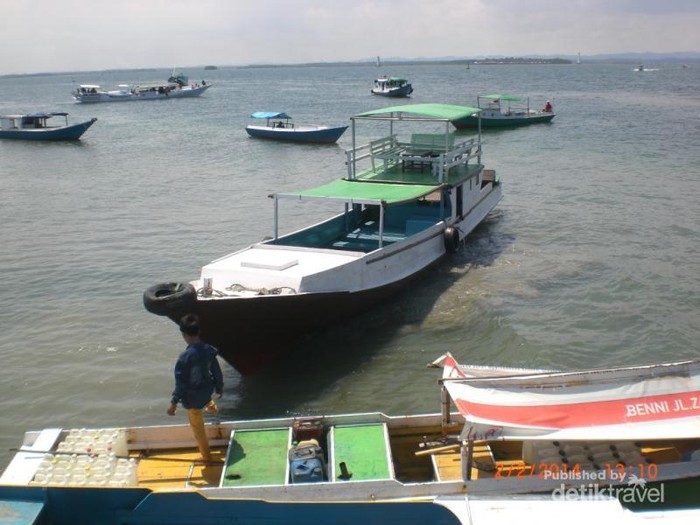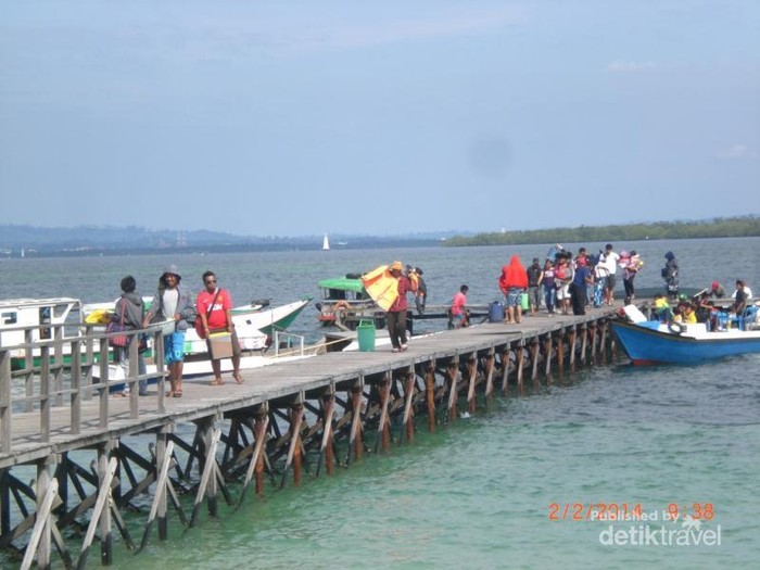 Suasana antrian perahu ketika pengunjung akan pulang dari Pulau Beras Basah
