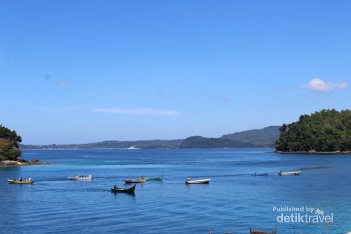 Suasana laut dengan beberapa perahu yang berlayar