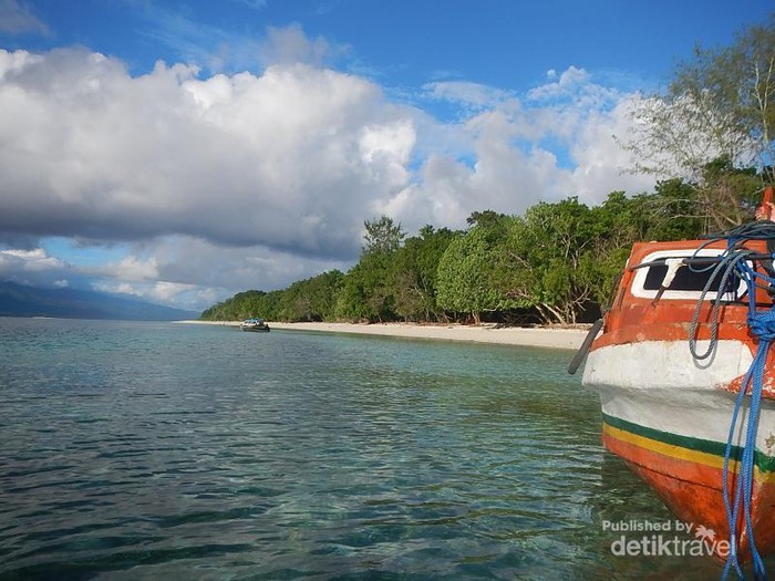 Pulau cantik akan mudah ditemui di Maluku. Salah satunya Pombom, pulau tak berpenghuni yang pas untuk dijadikan tempat liburan seharian. Mantap!