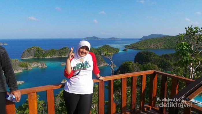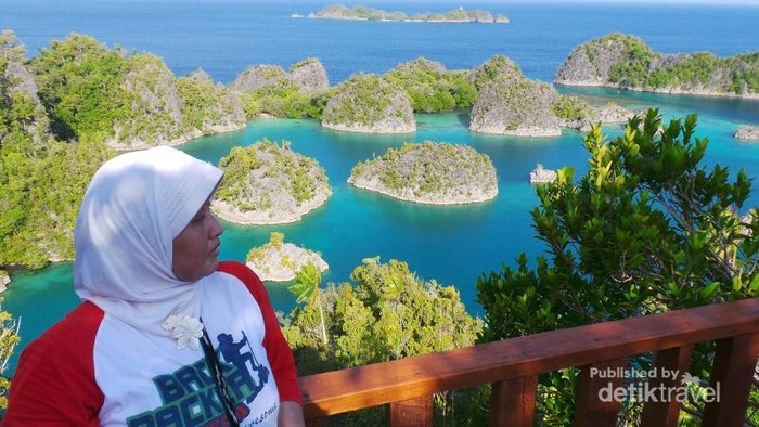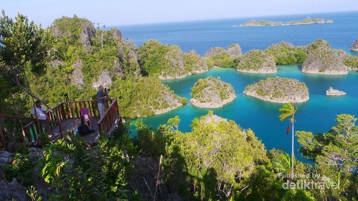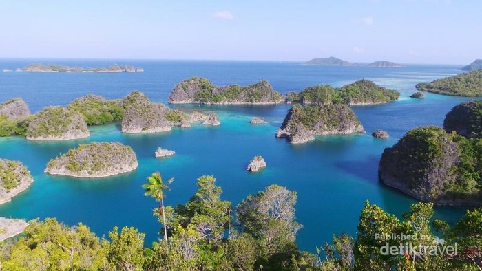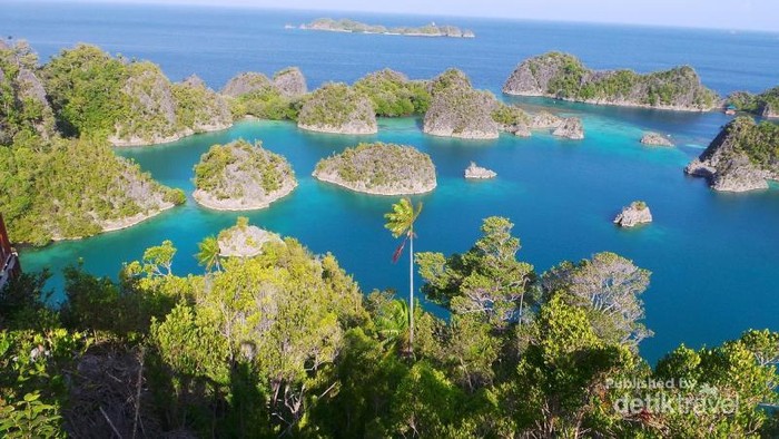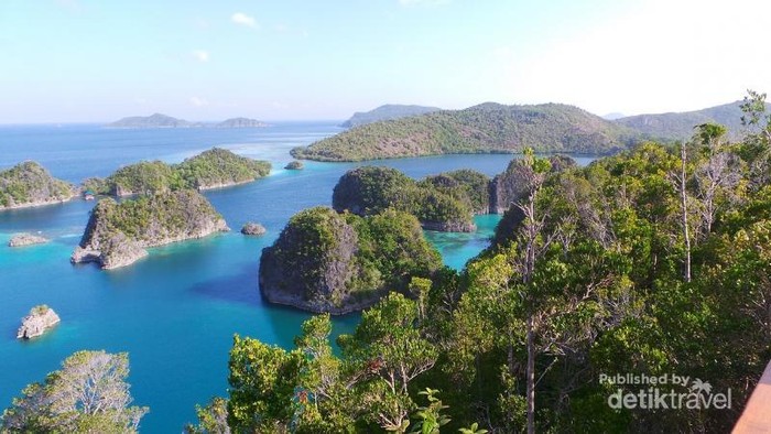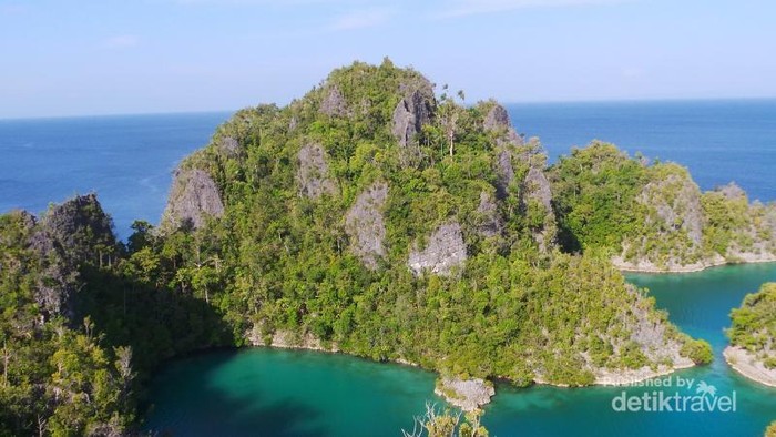 Pemandangan dari atas bukit, gugusan pulau/bentang alam karst Painemo