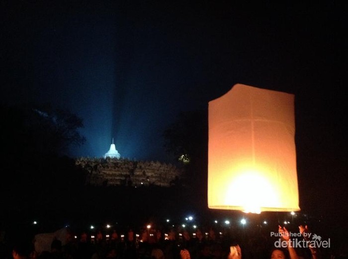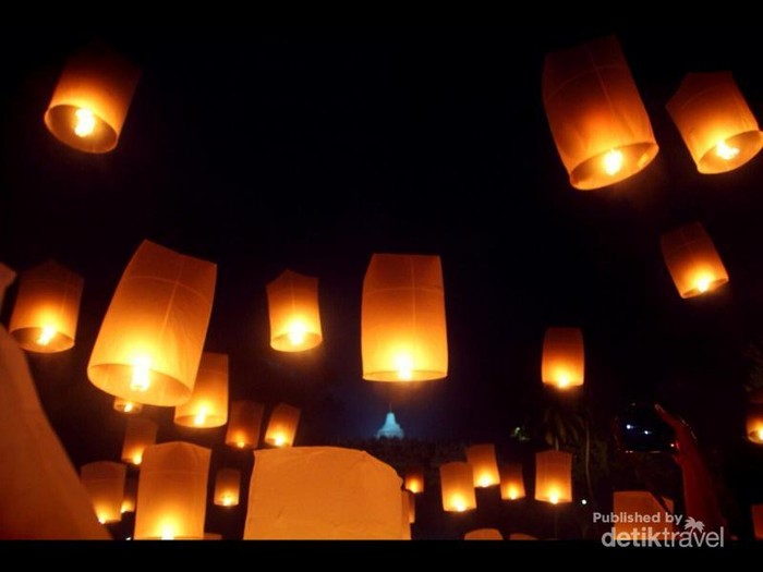 Setiap hari besar Waisak, Candi Borobudur di Magelang menjadi pusat perhatian traveler dan peziarah. ADapun yang paling dinanti adalah acara pelepasan 1.000 lampion ke udara di penghujung acara. Langit malam pun dipenuhi oleh cahaya lampion.